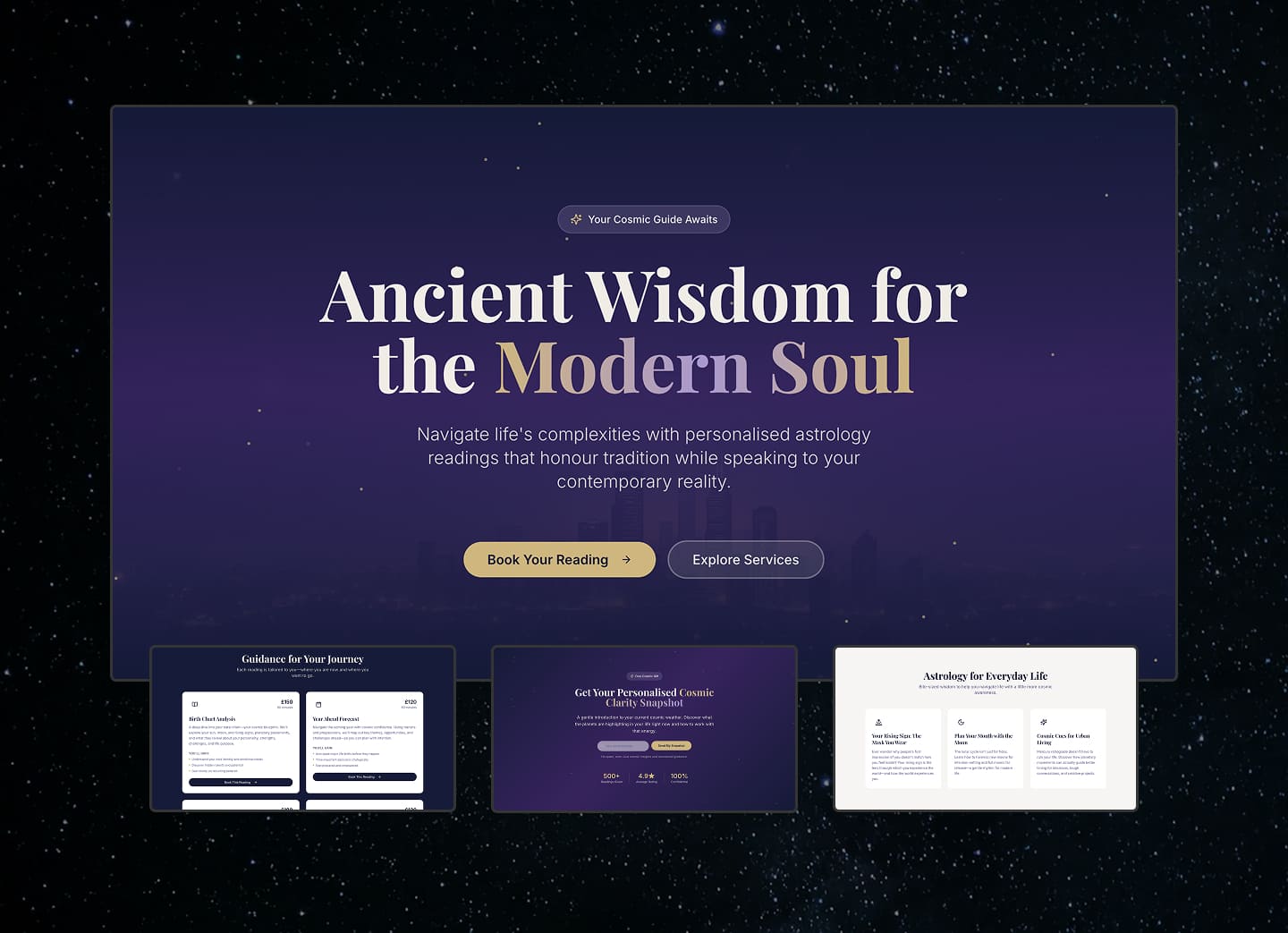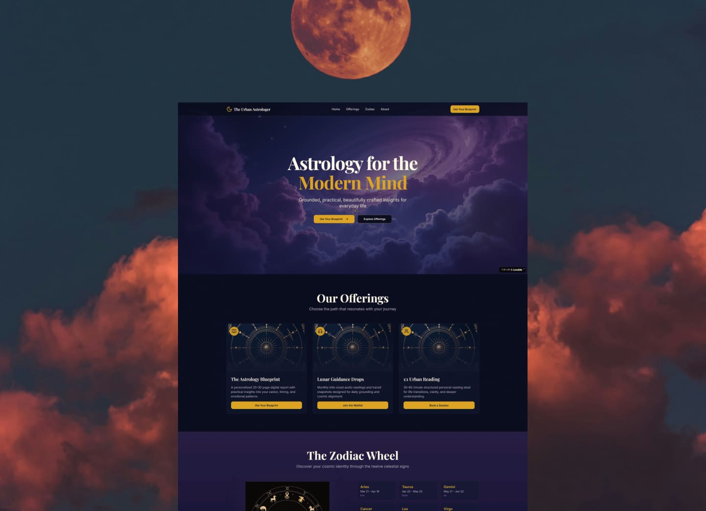 After completing the team experiment, we applied our process to create a full website for The Urban Astrologer, a long-standing client. We were given their Instagram brand and used similar techniques learned from the team experiment.